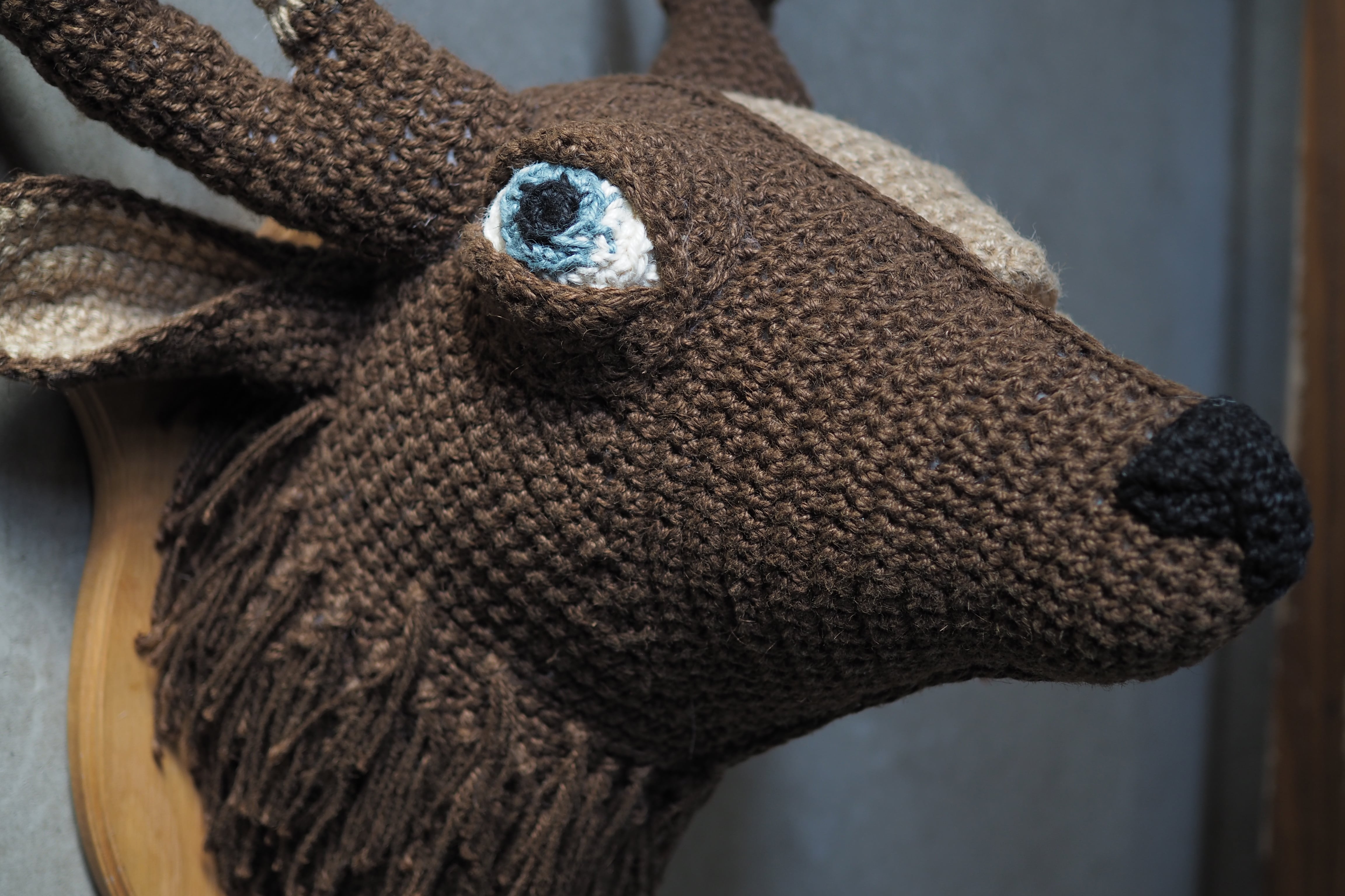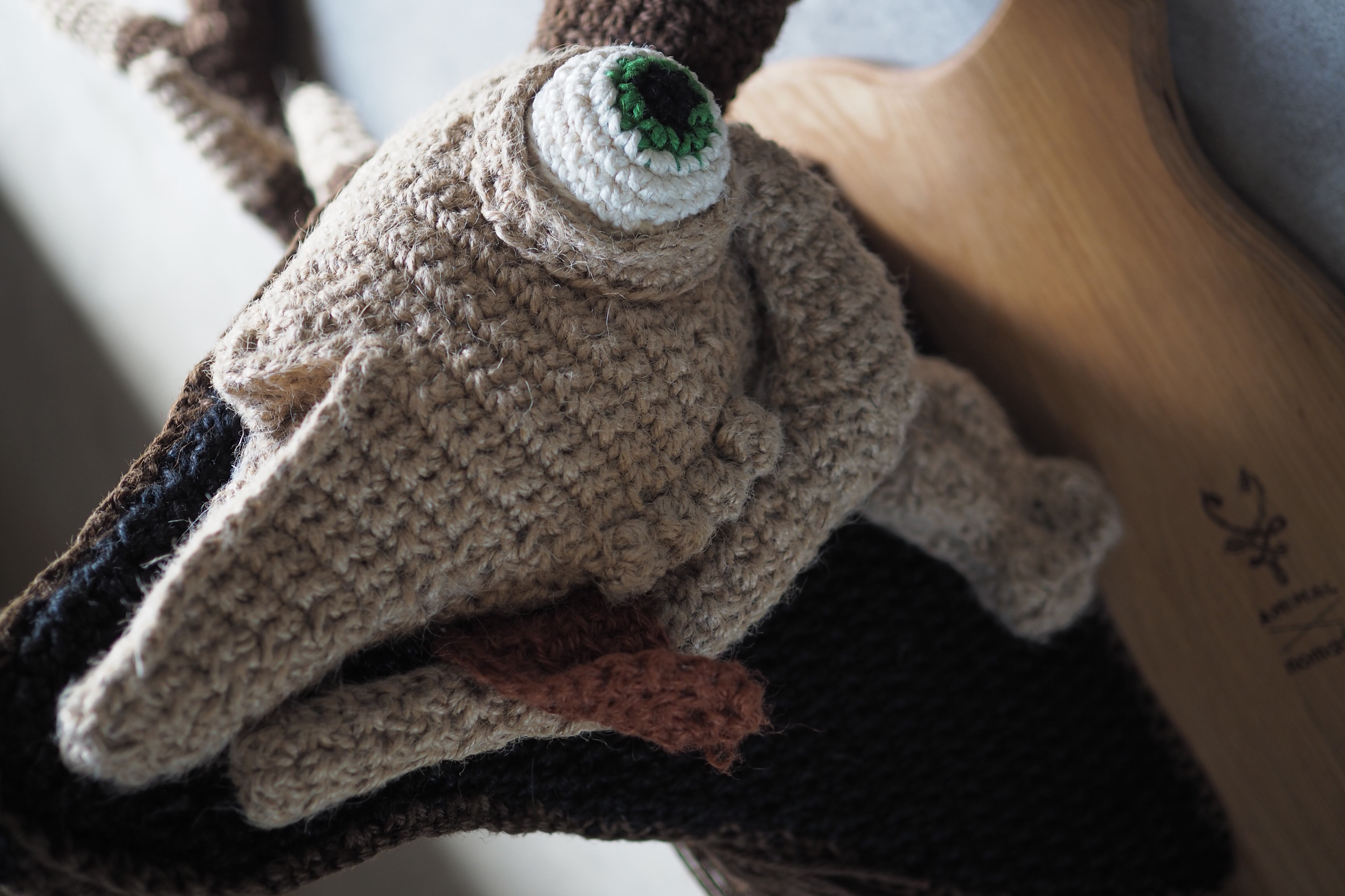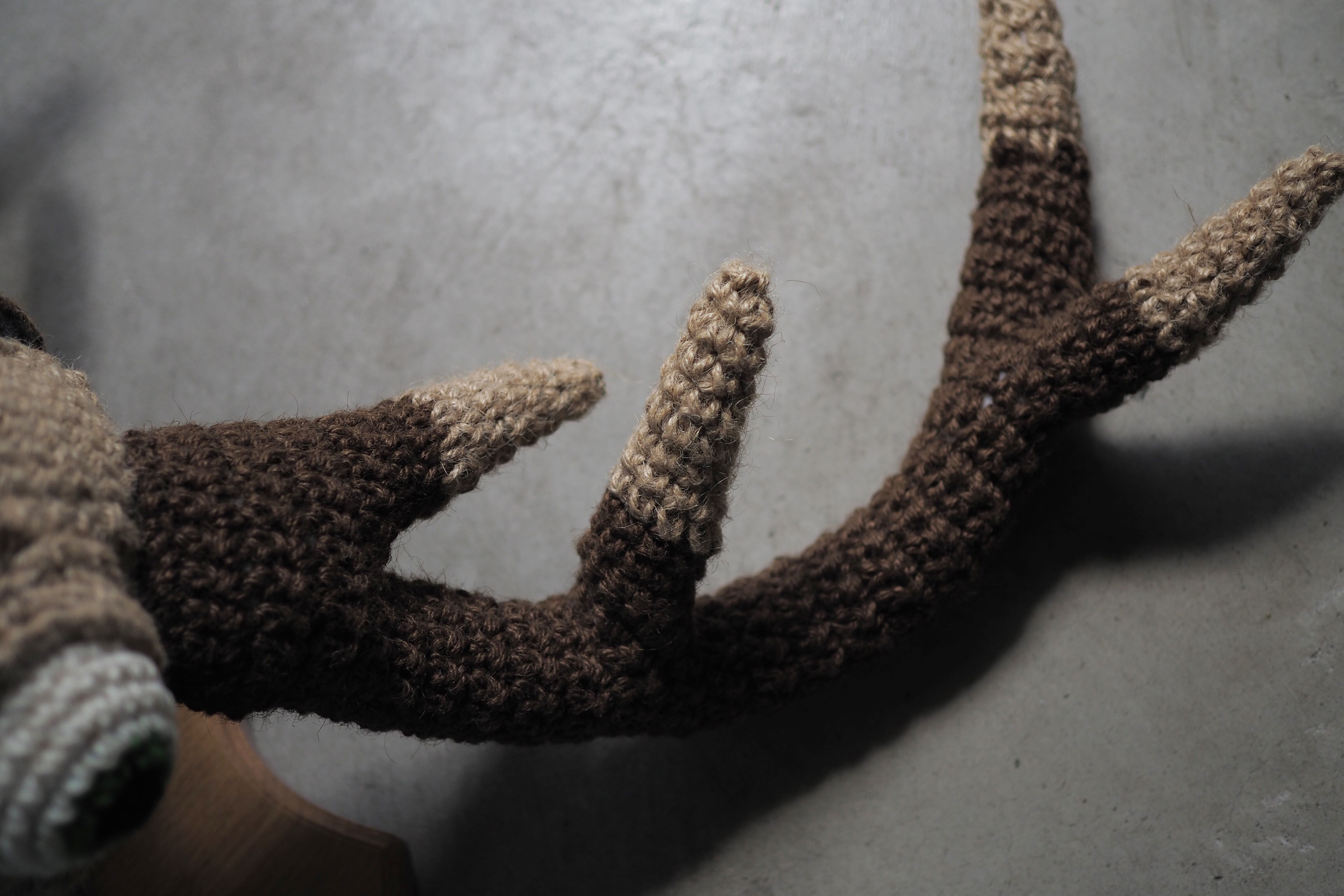 【素材】麻紐、ポリエステルわた、針金(ツノ部分)、オーク材(台座部分)
