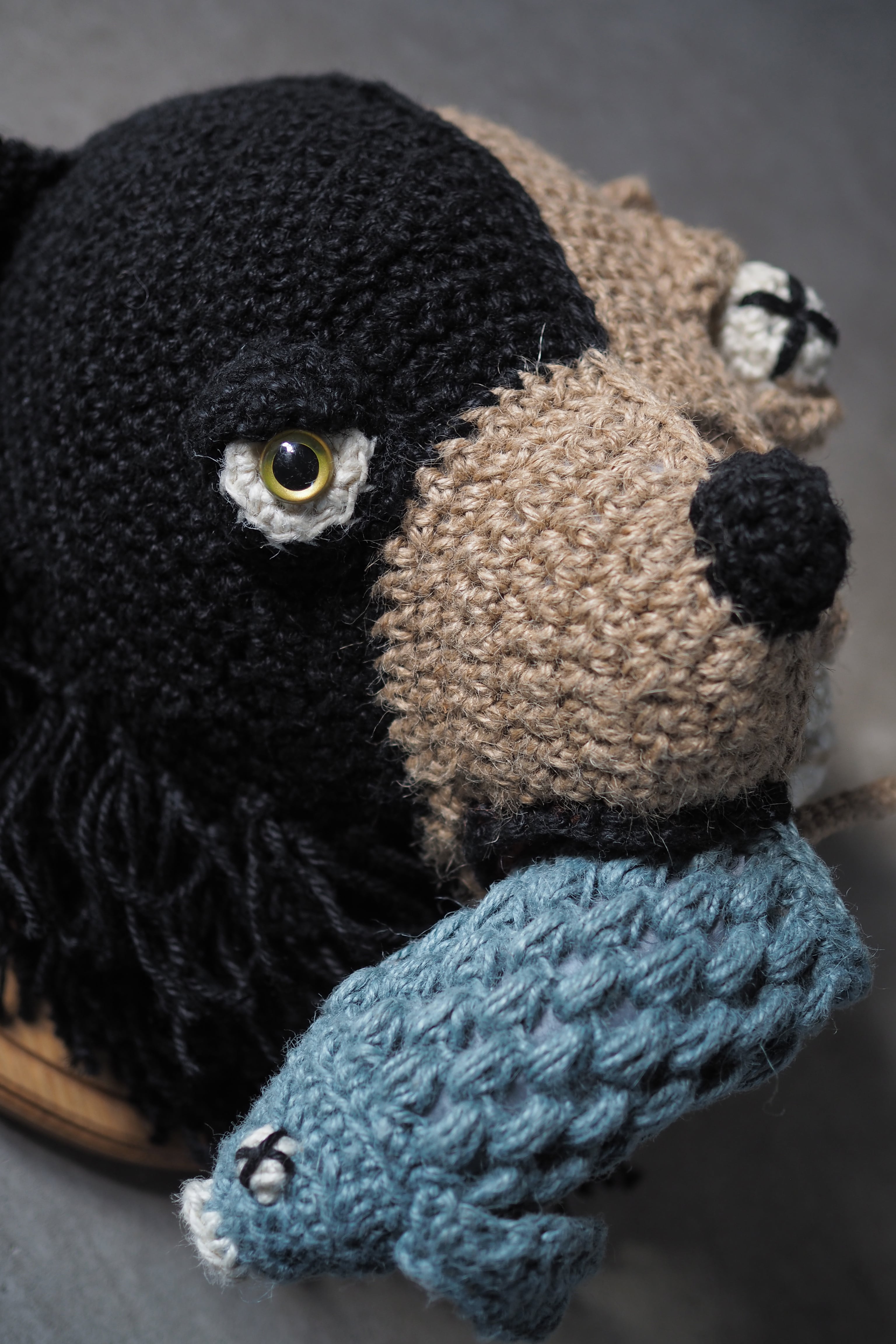 【素材】麻紐、ポリエステルわた、針金(サカナの骨部分)、オーク材(台座部分)
