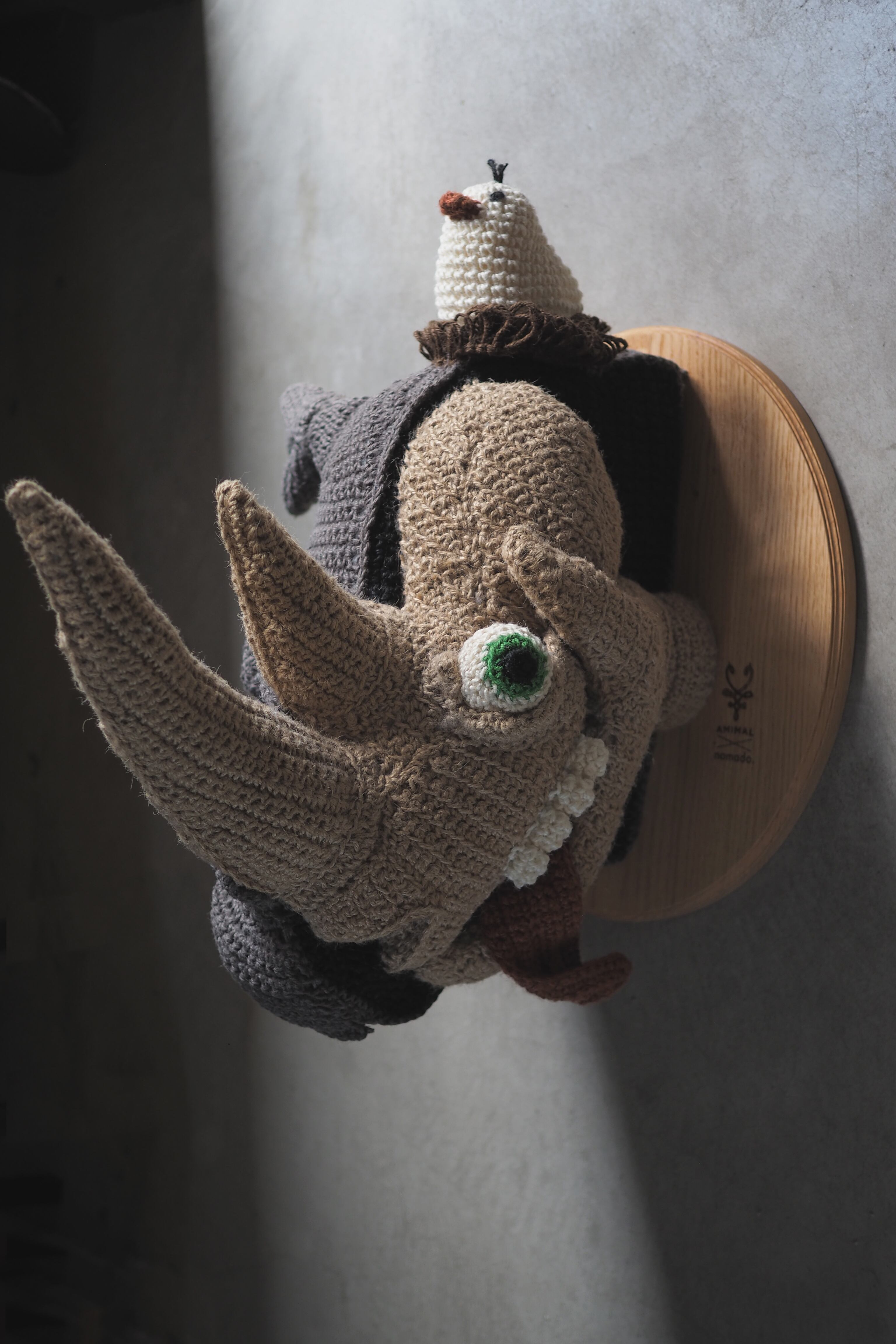 かわいらしいおやびんと奇妙な半分サイくんがデザインされたユニークなアニマルトロフィーです!